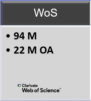 Mais recente edição (setembro de 2025) da Tabela de cobertura para as principais bases de dados bibliométricas. Trata-se do número de registros em milhões, indicando quantos registros são de acesso aberto (todos os tipos).